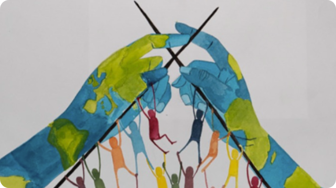 Il bellissimo disegno delle mani che lavorano a maglia è di Anja Rozen 13 anni, slovena. Ha  vinto  il primo premio 2021-22 Lions Club International del concorso Un poster per la pace.